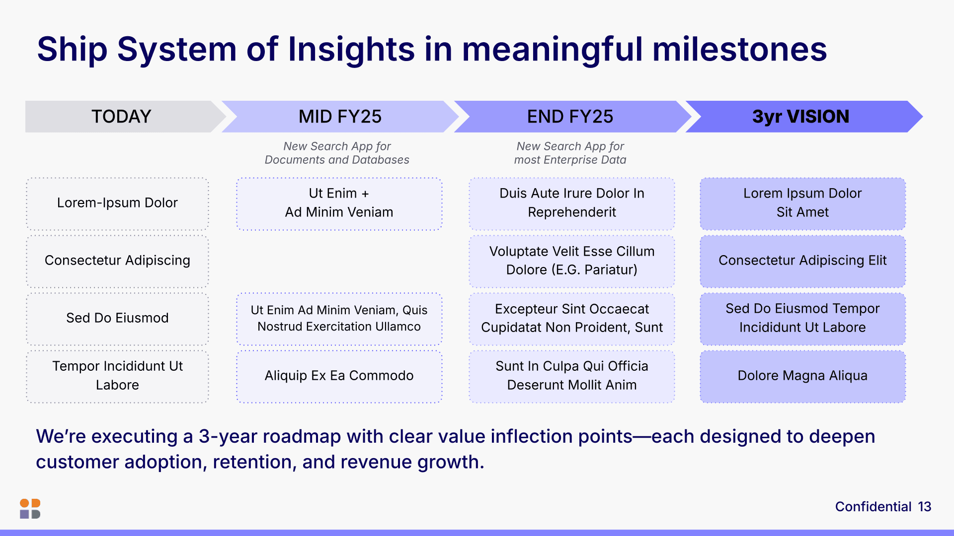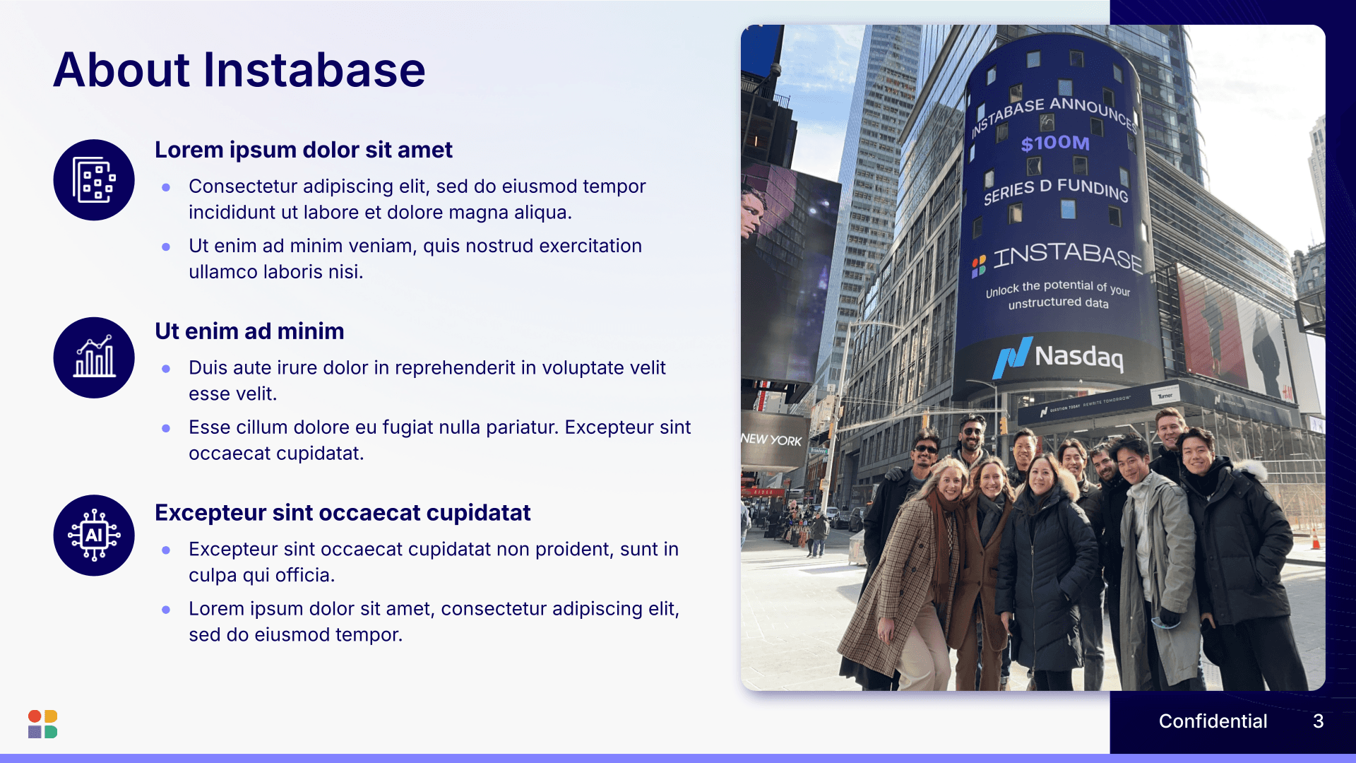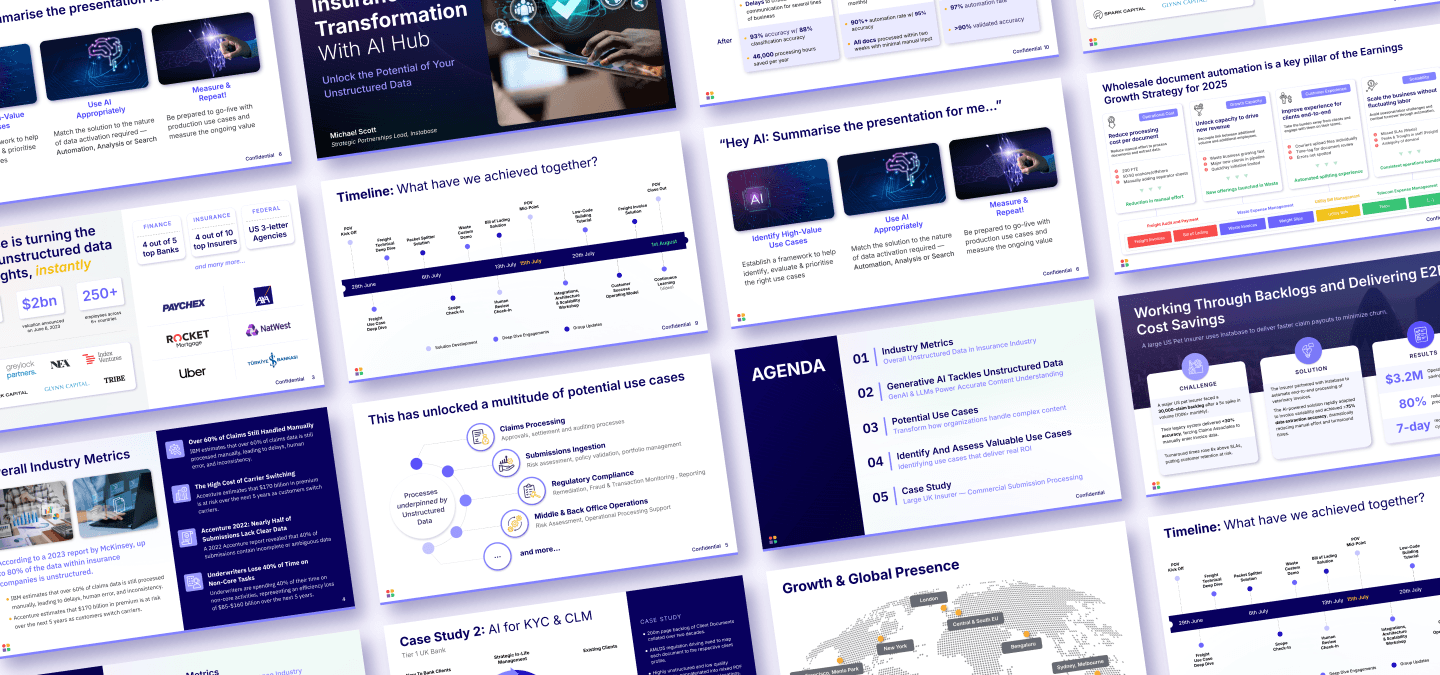 Presentation design for Instabase (select slides recreated for confidentiality).