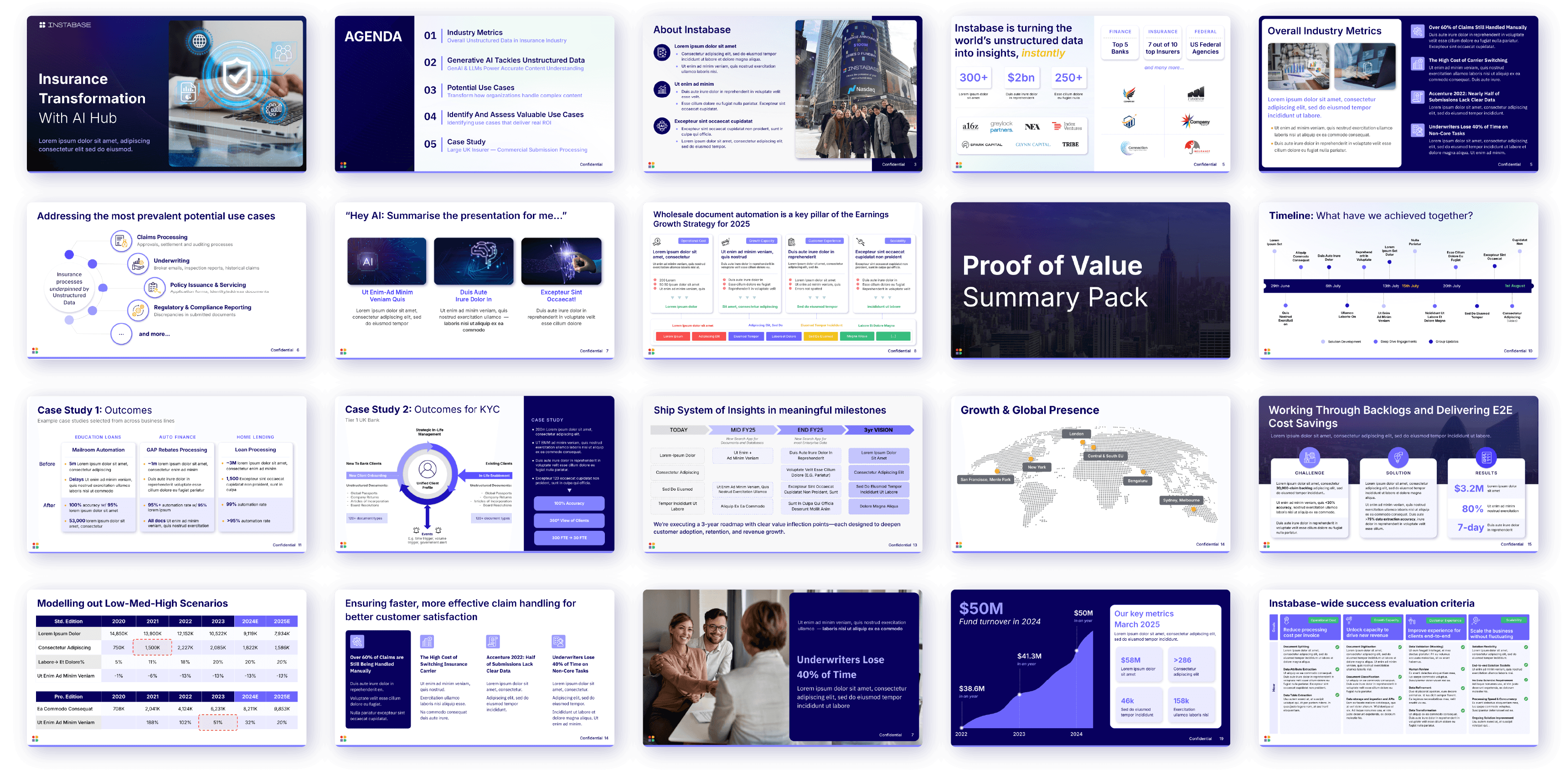 Designed high-impact presentations and reusable templates to elevate Instabase’s brand storytelling across teams.